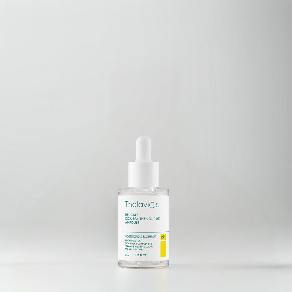 TheLaviCos Delicate Cica Panthenol 10% Ampoule is a concentrated, skin-repairing treatment designed to calm irritation, restore hydration, and reinforce the skin barrier—especially for sensitive or damaged skin types. Lightweight, refreshing texture that absorbs quickly without stickiness. Hypoallergenic, non-sticky, and clinically tested. Fragrance-free, colorant-free, paraben-free.