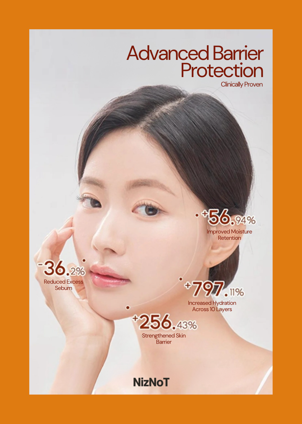 Reinforce your skin’s natural defenses with our Ceramide Barrier Cream—formulated to soothe irritation, lock in deep hydration, and visibly strengthen the skin’s protective layer. Clinically proven to boost moisture by 797% and improve barrier health by over 34%.